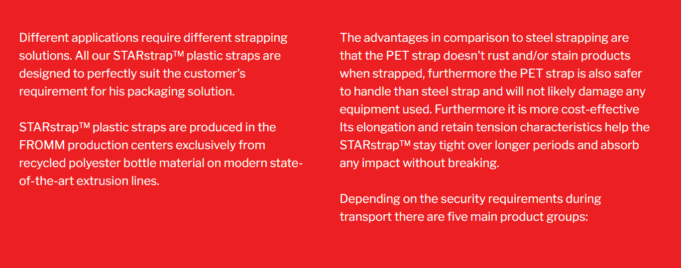 | Type | STARstrap™ | STARstrap™ Plus | STARstrap™ Ultra | STARstrap™ ECO-S Plus | STARstrap™ Ultra-H |